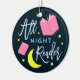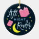 Dieses hübsche Buch-Ornament mit den Worten "All Night Reader" ist perfekt für Buchliebhaber, umgeben von gelben Mond und Sternen und rosa Büchern mit dunkelblauem Hintergrund. *Bitte beachten Sie, dass das Zazzle-Wasserzeichen, das in der Zoomvorschau angezeigt wird, NICHT auf dem gedruckten Endprodukt erscheint. © Bookish and Wonderful