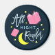 Mit diesem Buchmagnet mit den Worten "All Night Reader", umgeben von gelben Monden und Sternen, sowie rosa Büchern vor dunkelblauem Hintergrund, zeigen Sie Ihre Buchseite ab. *Bitte beachten Sie, dass das Zazzle-Wasserzeichen, das in der Zoomvorschau angezeigt wird, NICHT auf dem gedruckten Endprodukt erscheint. © Bookish and Wonderful