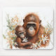 Aquarellbilder eines Affen mit Säugling auf weißem Hintergrund.