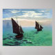 Monet Fishing Boats at Sea Poster. Ölmalerei auf Leinwand aus dem Jahr 1868. Monet bemalt oft Fischerboote. Dieses Marina-Gemälde ist eine seiner frühen Arbeiten und zeigt seinen Fortschritt in Richtung Impressionismus. Drei Fischerboote segeln über grüne Meereswellen und die Wolken am frühen Morgen schweben über ihnen. Ein hübsches Geschenk für Fans von Claude Monet, Ozeancapes und Fischerbooten.