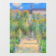 Fensterklammer mit Claude Monets Ölgemälde Der Künstlergarten in Vétheuil (1880). Sonnenblumen und andere schöne blaue und rote Blume reihen sich in den Garten ein, wo die Kinder einen angenehmen Spaziergang machen. Ein großartiges Geschenk für Fans von Impressionismus und französischer Kunst.
