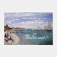 Wunderbare     Vintage   Malerei   der feinen Kunst vom Impressionist-Maler Claude Monet   von Regatta bei Sainte Adresse eines Strandes mit Losen Segelbooten in einer Regatta   und Leuten, die vom Sand aufpassen, ist auf dieser willkommenen Fußmatte. Bild ist das public domain wegen des abgelaufenen Copyright.