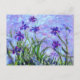 Postkarte mit Claude Monets Ölpest Lilac Irises (1914-1917). Schöne violette Blumen in einem Meer von Grün. Eine ruhige Naturlandschaft. Ein großartiges Monetgeschenk für Fans von Impressionismus und französischer Kunst.