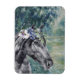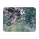 Die schöne und künstlerische Zusammenstellung zeigt Claude Monets Morning an der Seine als Hintergrund mit dem Porträt eines schwarzen Pferdes mit floralen Kronen in Aquarelltönen.