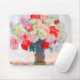 Mouse Pad mit Claude Monets Blume Gemälde. Schöne rote, gelbe und weiße Pfannkuchen in einer blauen Vase. Ein großartiges Monetgeschenk für Fans von Impressionismus und französischer Kunst.