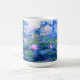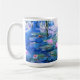 Eine Monet-Rosa-Wasserlililie ist eine klassische Tasse, 15oz., mit wunderschönen rosa Seerosen, die in einem ruhigen, blauen Teich mit Lilienblättern schwimmen. Ein großartiges Monet-Geschenk für die Liebhaber von Impressionismus und französischer Kunst.