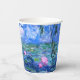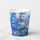 Papier Cups mit schönen rosa Seerosen in einem ruhigen blauen Teich mit Lilienpolstern schwebend. Ein großartiges Monet-Geschenk für die Liebhaber von Impressionismus und französischer Kunst.