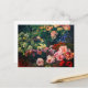 Postkarte mit Claude Monets Ölgemälde Frühlingsblumen (1864). Ziegel, Lilaks und Hydrangeas schmücken einen Tisch wunderschön. Ein großartiges Geschenk für Fans von Impressionismus und französischer Kunst.