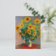 Karte mit Claude Monets Ölgemälde Bouquet von Sonnenblumen (1881). Schöne Sonnenblumen in einer blauen Vase auf einem roten Tisch. Ein großartiges Geschenk für Fans von Impressionismus und französischer Kunst.