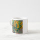 Espresso Cup mit Claude Monets Ölgemälde Bouquet von Sonnenblumen (1881). Schöne Sonnenblumen in einer blauen Vase auf einem roten Tisch. Ein großartiges Geschenk für Fans von Impressionismus und französischer Kunst.