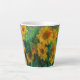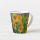 Die Tasse mit Claude Monets Ölgemälde Bouquet von Sonnenblumen (1881). Schöne Sonnenblumen in einer blauen Vase auf einem roten Tisch. Ein großartiges Geschenk für Fans von Impressionismus und französischer Kunst.