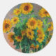 Stickers mit Claude Monets Ölgemälde Bouquet von Sonnenblumen (1881). Schöne Sonnenblumen in einer blauen Vase auf einem roten Tisch. Ein großartiges Geschenk für Fans von Impressionismus und französischer Kunst.