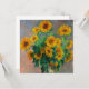 Karte mit Claude Monets Ölgemälde Bouquet von Sonnenblumen (1881). Schöne Sonnenblumen in einer blauen Vase auf einem roten Tisch. Ein großartiges Geschenk für Fans von Impressionismus und französischer Kunst.