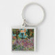 Ein Monet Blume Schlüsselanhänger mit schönen rosa und lila Reisen in einem Garten schimmert unter hohen Bäumen. Friedlicher Naturimpressionismus mit herrlichen Blume und landschaftlicher Landschaft, ein großartiges Monetgeschenk für die Liebhaber von Impressionismus und französischer Kunst.