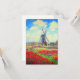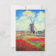 Karte mit Claude Monets Blume- und Windmühle-Malerei. Schöne und farbenfrohe Felder mit roten, rosa und gelben Tulpen neben einer Windmühle und einem Haus in Holland. Ein großartiges Monetgeschenk für Fans von Impressionismus und französischer Kunst.