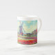 China Tasse mit Claude Monets Blume und Windmühle. Schöne und farbenfrohe Felder mit roten, rosa und gelben Tulpen neben einer Windmühle und einem Haus in Holland. Ein großartiges Monetgeschenk für Fans von Impressionismus und französischer Kunst.