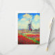 Karte mit Claude Monets Blume- und Windmühle-Malerei. Schöne und farbenfrohe Felder mit roten, rosa und gelben Tulpen neben einer Windmühle und einem Haus in Holland. Ein großartiges Monetgeschenk für Fans von Impressionismus und französischer Kunst.
