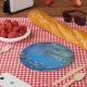 Teller mit Claude Monets Ölgemälde Water Lilies (1906). Ein ruhiges Stillleben des Zusammenspiels von Licht und Reflexion auf schönen Seerosen in einem Teich. Ein großartiges Geschenk für Fans von Impressionismus und französischer Kunst.