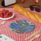 Teller mit Claude Monets Ölgemälde Water Lilies (1916). Schöne rosa, lila und rote Seerosen, die in einem ruhigen Teich schwimmen. Ein großartiges Geschenk für Fans von Impressionismus und französischer Kunst.