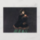 Postkarte mit Claude Monets Ölgemälde Die Frau in einem grünen Kleid (1866). Camille trägt ein grün-schwarz gestreiftes Kleid, eine Kappe und einen Pelzmantel. Ein großartiges Geschenk für Fans von Akademie und französischer Kunst.