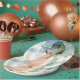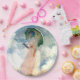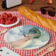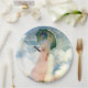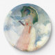 Papier Teller mit Claude Monets Ehefrau, Camille, mit einem grünen Sonnenschirm in einem schönen rosa Feld, das vom Wind geblasen wird. Ein großartiges Monetgeschenk für Fans von Impressionismus und französischer Kunst.