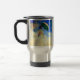 Travel Mug mit Claude Monets Ehefrau, Camille, mit einem grünen Sonnenschirm, während ihr blauer Schleier vom Wind in einem grünen und goldenen Feld geblasen wird. Ein großartiges Monetgeschenk für Fans von Impressionismus und französischer Kunst.