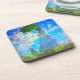 Ein Familienportrait Getränkecoaster Set mit Claude Monets Ehefrau, Camille, mit einem Sonnenschirm, und ihrem Sohn Jean, der einen Spaziergang auf einem belebten, grünen Feld macht und an einem Sommertag vom Wind verweht wird. Ein großartiges Monetgeschenk für Fans von Impressionismus und französischer Kunst.