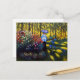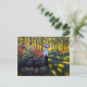 Postkarte mit Claude Monets Ölgemälde Woman mit einem Parasol im Garten in Argentinien (1875). Camille, Ehefrau von Monet, hält einen blauen Sonnenschirm in einem Garten mit schönen roten, rosa und weißen Blume. Eine ruhige Naturlandschaft. Ein großartiges Monetgeschenk für Fans von Impressionismus und französischer Kunst.