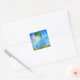 Viereckige Aufkleber mit Claude Monets Ehefrau, Camille, mit einem Sonnenschirm, und ihrem Sohn Jean, der einen Spaziergang in einem lebhaften grünen Feld unternimmt und an einem Sommertag vom Wind verweht wird. Ein großartiges Monetgeschenk für Fans von Impressionismus und französischer Kunst.