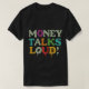 Der T - Shirt enthält die Phrase "Money Talks Loud" in einem kühlen, bunten Comic Buch Schriftart. Ein Dollarbild, das in "Vorträgen" mit einem "O" Pop zeigt, fügt dem Design eine spielerische Touch hinzu.