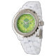 Fügen Sie Ihre eigenen Initialen zu diesem anpassbaren Uhrengesicht hinzu. Eine schöne Dollarbildgrafik über einem wirbelnden, gemusterten grünen Farbverlauf hebt diese Uhr wirklich hervor. Zahlreiche Stundenanzeigen mit Minutenunterteilungen machen es funktionell und leicht lesbar. Sieht toll aus, macht Spaß zu tragen und macht eine großartige, individuell anpassbare und einzigartige Geschenkidee.