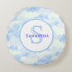 Dekorieren Sie Ihr Baby Kinderzimmer, Kinderzimmer oder Wohnzimmer mit diesem großen personalisierten Monogramm Wurfkissen mit einem blau-weiß strukturierten Wolkenmotiv.