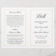 Dieses Programm ist eine 8.5 x 11-Seite, die Sie zum Zusammenbauen zusammenfalten müssen. Der goldene Rahmen ist in Dicke, Größe und Farbe bearbeitbar. Klassisches Hochzeitsprogramm in Schwarz-Weiß mit moderner Touch mit dem eleganten Drehbuch Ihrer Initialen.
