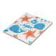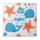 Adorable Babymuster mit blauen Wal-Cartoon und korallenfarbenen Meeresstern mit einem runden Abzeichen und einem Baby-Name Monogramm. Niedliches und farbenfrohes Babydesign. Personalisieren Sie das Programm, indem Sie den Namen ändern oder den Text und das Abzeichen entfernen. Klicken Sie auf Anpassen, um Ihre eigene Touch hinzuzufügen.