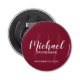 Fügen Sie Ihrer Hochzeit eine persönliche Touch mit einem personalisierten Trauzeugen Flaschenöffner hinzu. Dieser Flaschenöffner zeigt den Namen der personalisierten Trauzeugen im modernen, weißen Script-Schriftart-Stil und Monogramm in hellbordeauxroten modernen Drehbuch-Schriftart-Stil als Hintergrund mit Titel und Hochzeitdatum in weiß, modernen Sans Serif Schriftart Stil auf bordeauxroten Hintergrund. Auch perfekt für Trauzeuge, Brautvater und mehr.
