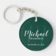 Fügen Sie Ihrer Hochzeit eine persönliche Touch mit personalisierten Trauzeugen Schlüsselanhänger hinzu. Dieser Schlüsselanhänger zeichnet sich durch den Namen personalisierter Trauzeugen im modernen, weißen Skript-Schriftart-Stil und Monogramm in hellgrün modernen Drehbuch-Schriftart-Stil als Hintergrund mit Titel und Hochzeitdatum in weiß modernen Sans Serif Schriftart Stil auf smaragdgrünen Hintergrund. Auch perfekt für Trauzeuge, Brautvater und mehr.