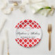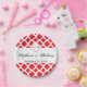 Mongram Red Quatrefoil Muster Hochzeit Pappteller