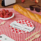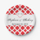 Mit Monogramm Rot-Weiß-Vierbeiner-Muster Hochzeitspapier-Teller. Rotes Quarrefolienmuster auf weißem Hintergrund.