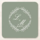 Mongram Script Branch Sage Green Wedding Rechteckiger Pappuntersetzer