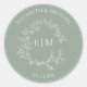 Mongram Wedding Cla Modern Sage Green Leafy Wappen Runder Aufkleber
