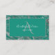 Dieses trendige, berufliche, lustige und einzigartige Glam Girly-Design verfügt über ein großes, anpassbares Monogramm in cool silbergrauem Vorderteil in eleganter Display-Typografie und einen anpassbaren Namen in schönem Drehbuch mit einem handgeschriebenen Look in Weiß in einem grau gestrichenen, aquamarinen grünen Rechteck, mit dem Titel des Auftrages unten. Der Hintergrund besteht aus silberfarbenem, glänzenden Marmor, der mit Glitzer verziert ist und auf einem aquamarinen grünen Hintergrund glitzert. Auf der Rückseite der Karte ist der Text benutzerdefinierbarer. Sie können dieses Element personalisieren, indem Sie das Monogramm, den Namen und den Text in der Produktvorlage ändern.
