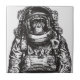 Dieses Design zeigt ein Portrait eines Schimpansen in einem Astronautenoutfit.