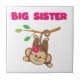 Ein niedlicher Affe mit einer rosa Blume, die von ihrem Schwanz aus einem Ast schwingt, und rosa Text liest "Big Sister" auf großen Schwesterinnen-T - Shirt, Schlüsselketten, Karten, Aufklebern, Totensäcken, Magneten, Mousepads, Kissen und anderen großen Schwesterkleidern und Geschenken!