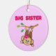 Ein niedlicher Affe mit einer rosa Blume, die von ihrem Schwanz aus einem Ast schwingt, und rosa Text liest "Big Sister" auf großen Schwesterinnen-T - Shirt, Schlüsselketten, Karten, Aufklebern, Totensäcken, Magneten, Mousepads, Kissen und anderen großen Schwesterkleidern und Geschenken!
