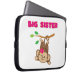 Ein niedlicher Affe mit einer rosa Blume, die von ihrem Schwanz aus einem Ast schwingt, und rosa Text liest "Big Sister" auf großen Schwesterinnen-T - Shirt, Schlüsselketten, Karten, Aufklebern, Totensäcken, Magneten, Mousepads, Kissen und anderen großen Schwesterkleidern und Geschenken!
