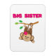 Ein niedlicher Affe mit einer rosa Blume, die von ihrem Schwanz aus einem Ast schwingt, und rosa Text liest "Big Sister" auf großen Schwesterinnen-T - Shirt, Schlüsselketten, Karten, Aufklebern, Totensäcken, Magneten, Mousepads, Kissen und anderen großen Schwesterkleidern und Geschenken!