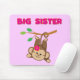 Ein niedlicher Affe mit einer rosa Blume, die von ihrem Schwanz aus einem Ast schwingt, und rosa Text liest "Big Sister" auf großen Schwesterinnen-T - Shirt, Schlüsselketten, Karten, Aufklebern, Totensäcken, Magneten, Mousepads, Kissen und anderen großen Schwesterkleidern und Geschenken!