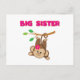Ein niedlicher Affe mit einer rosa Blume, die von ihrem Schwanz aus einem Ast schwingt, und rosa Text liest "Big Sister" auf großen Schwesterinnen-T - Shirt, Schlüsselketten, Karten, Aufklebern, Totensäcken, Magneten, Mousepads, Kissen und anderen großen Schwesterkleidern und Geschenken!