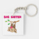 Ein niedlicher Affe mit einer rosa Blume, die von ihrem Schwanz aus einem Ast schwingt, und rosa Text liest "Big Sister" auf großen Schwesterinnen-T - Shirt, Schlüsselketten, Karten, Aufklebern, Totensäcken, Magneten, Mousepads, Kissen und anderen großen Schwesterkleidern und Geschenken!