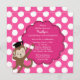 So sehr niedlicher Kindergarten Abschluss mit einem hübschen kleinen Affen in einer Kappe mit einem Diplom-Set auf einem rosa und weißen Polka-Punkt Hintergrund. Personalisieren Sie Ihre Party-Informationen und Sie sind alle Set zu gehen! Matching Dankeschön Notizen, Aufkleber & Porto in unserem Shop unter www.celebrateitinvites.com .